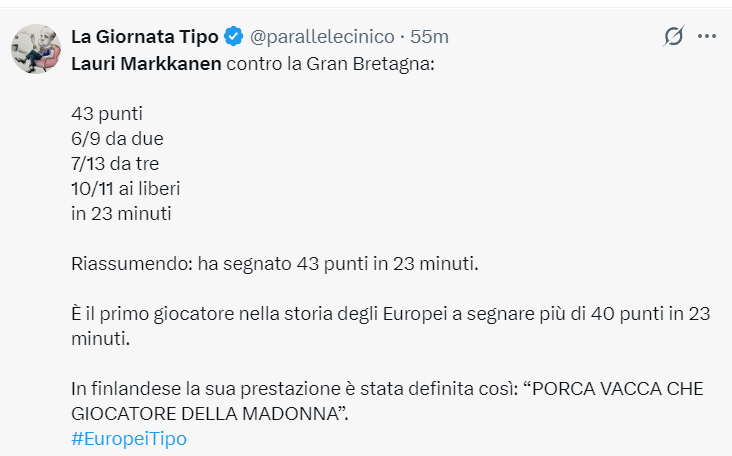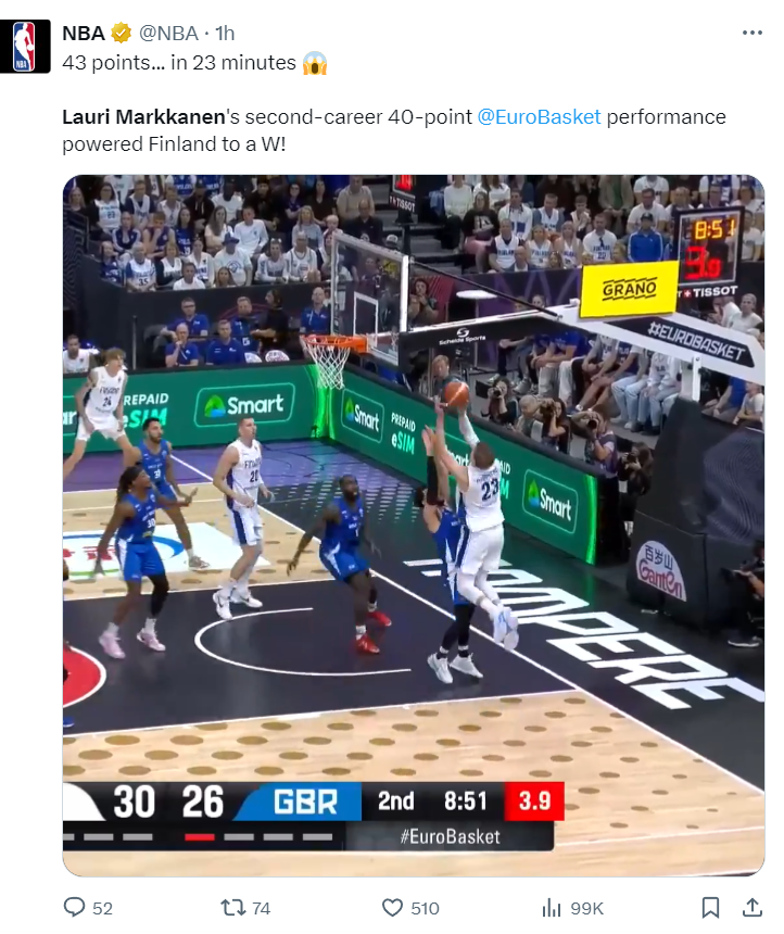 欧洲记者:我的天啊,短短23分钟拿到43分,这是欧洲杯历史上首位23分钟能拿下至少40+的纪录,芬兰球迷纷纷高呼这人太神了。