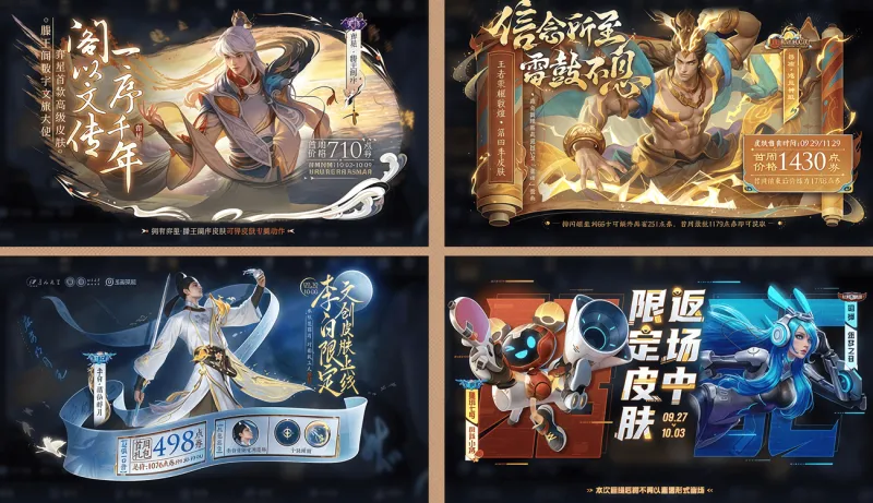 并且这3年上架的皮肤还有一个相同点,都有联动文创皮肤,滕王阁序的滕王阁,遇见神鼓的敦煌研究院,谪仙醉月的李白故里·江油,那今年的国庆会继续延续这种设定吗?新皮肤数量和2024年相比会怎么样呢?这都是接下来大家所期待的活动。