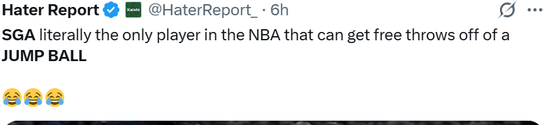 Hater Report则是写道:“SGA是NBA中唯一一个可以在跳球后获得罚球机会的球员”。